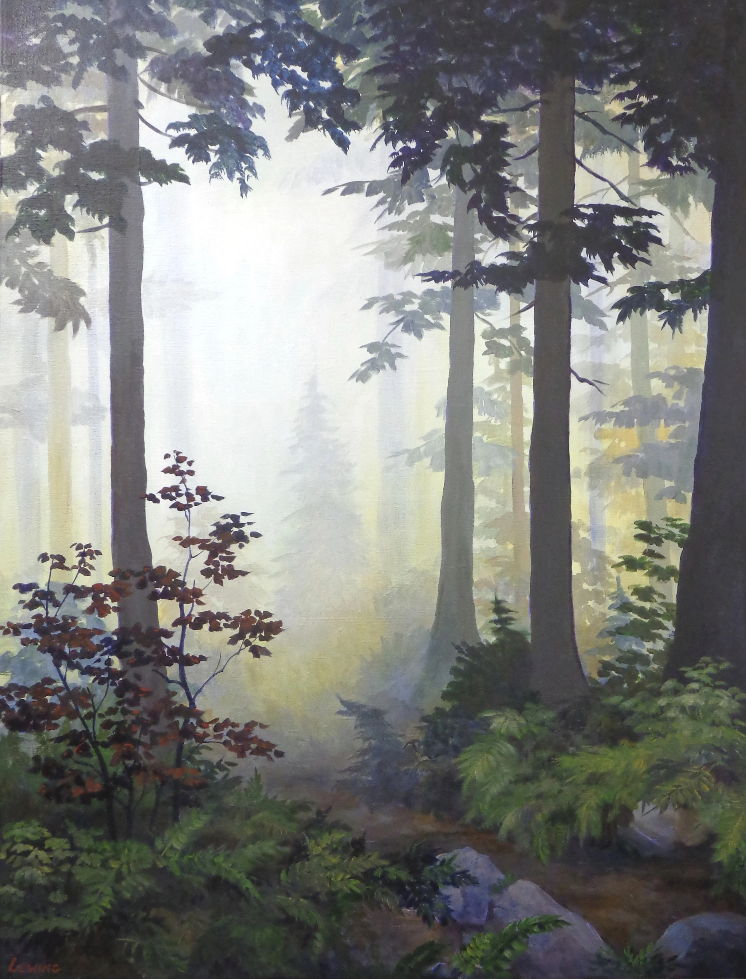 Last weekend I did the Bellevue Arts Museum Artsfair for the second time with paintings. Last time was two years ago. I used to do that fair every year back when I was a potter and on into when I switched to tiles, from the mid-70s through the mid-90s. It was a huge success, the best fair I've had in many years. I sold 11 paintings, including a couple of nice big ones. Here's a picture of one of the big ones and one of the better paintings I've done so far. It was really great to spend three days talking to people about favorite hiking spots, and meeting lots of satisfied customers from years past, some with paintings, others with tile projects and even a few with pots. Most of this month I'll be "image harvesting", hiking and shooting photos.